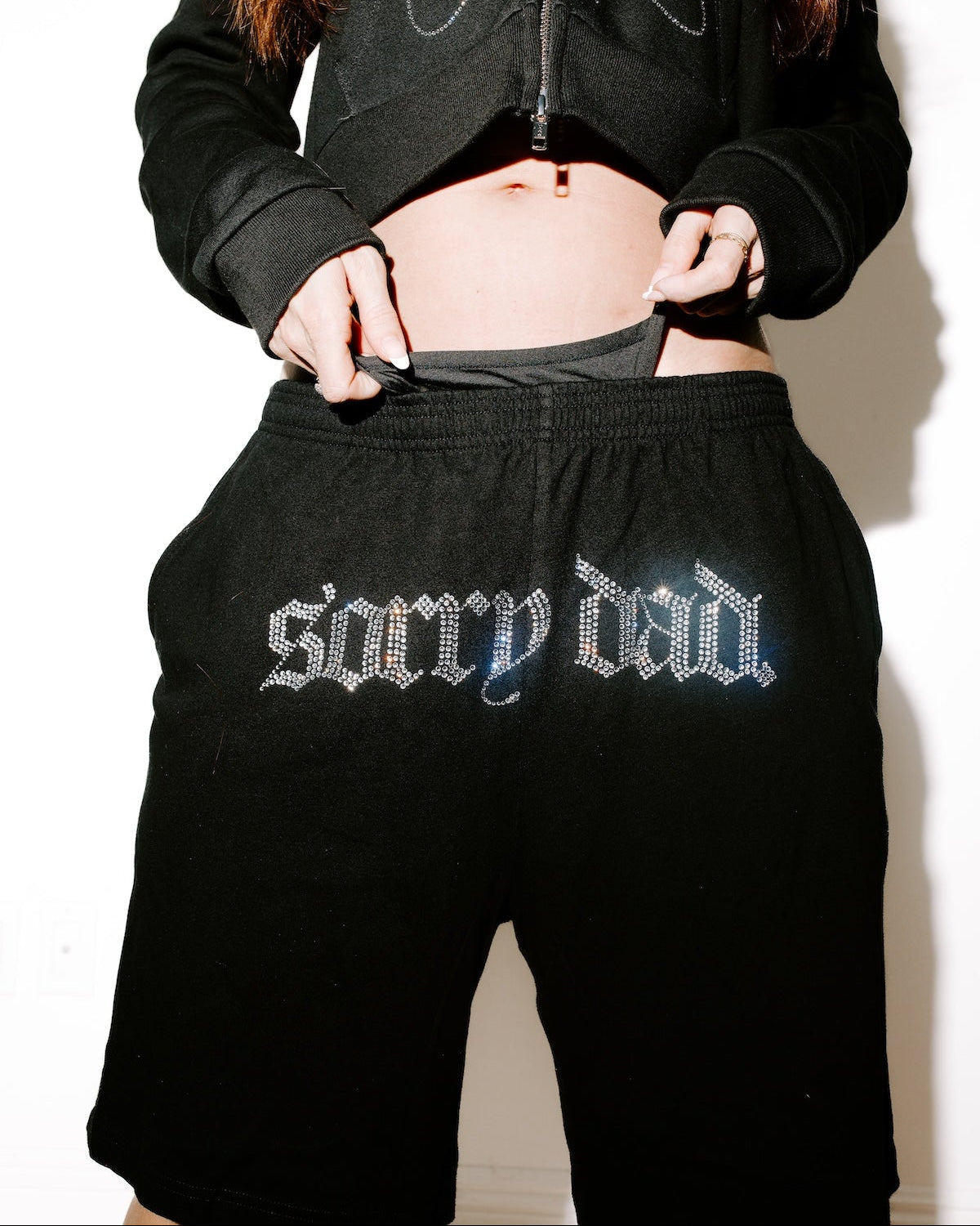 Rhinestone 'Sorry Dad' Gym Class Shorts